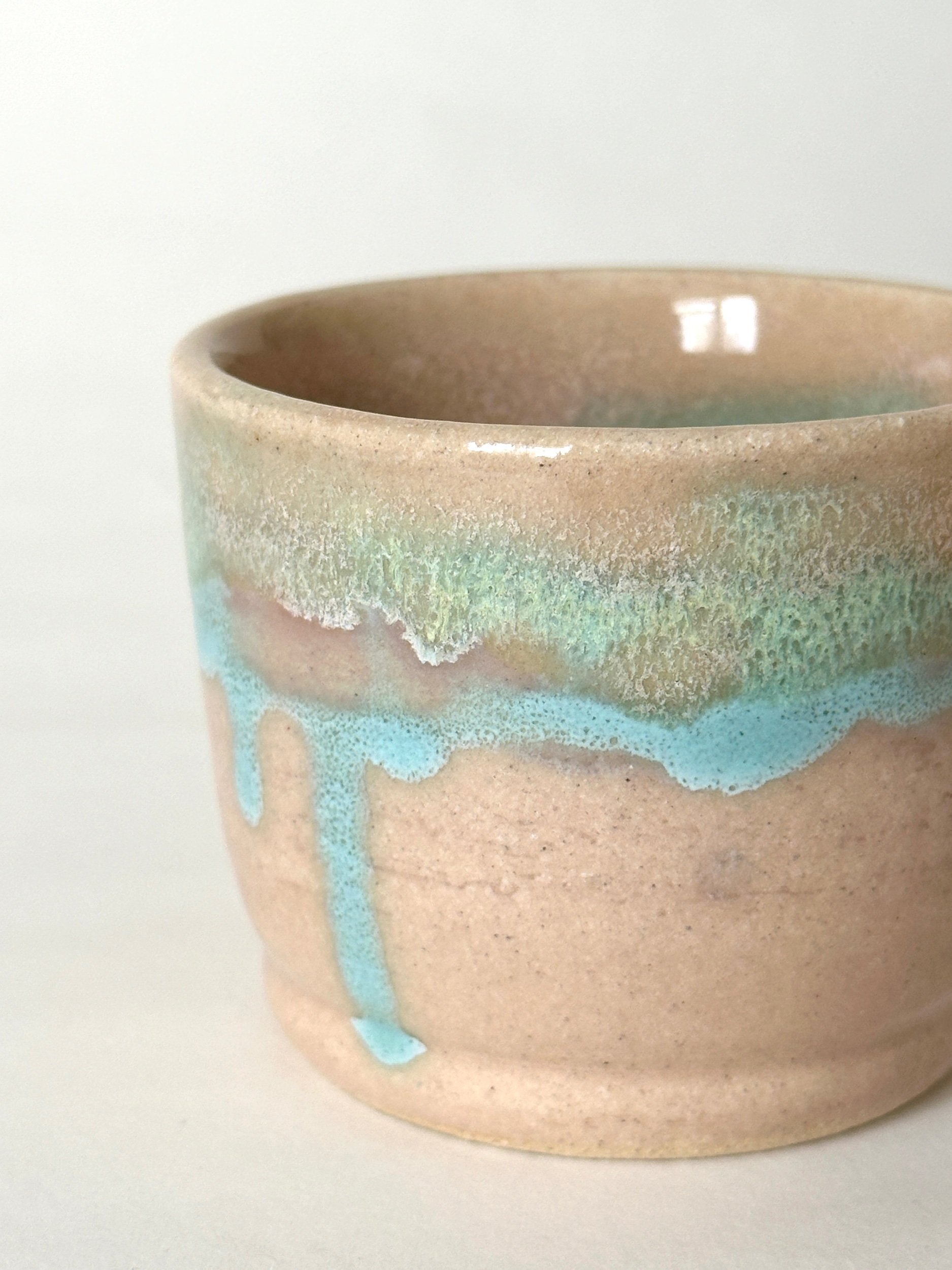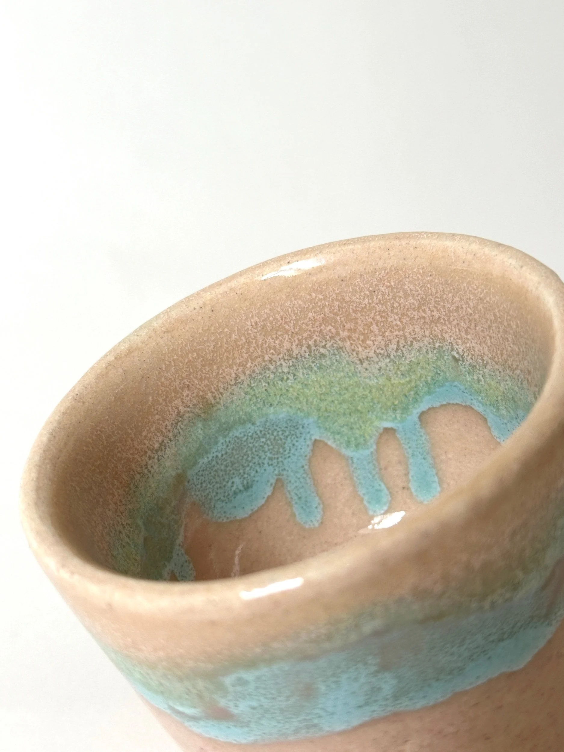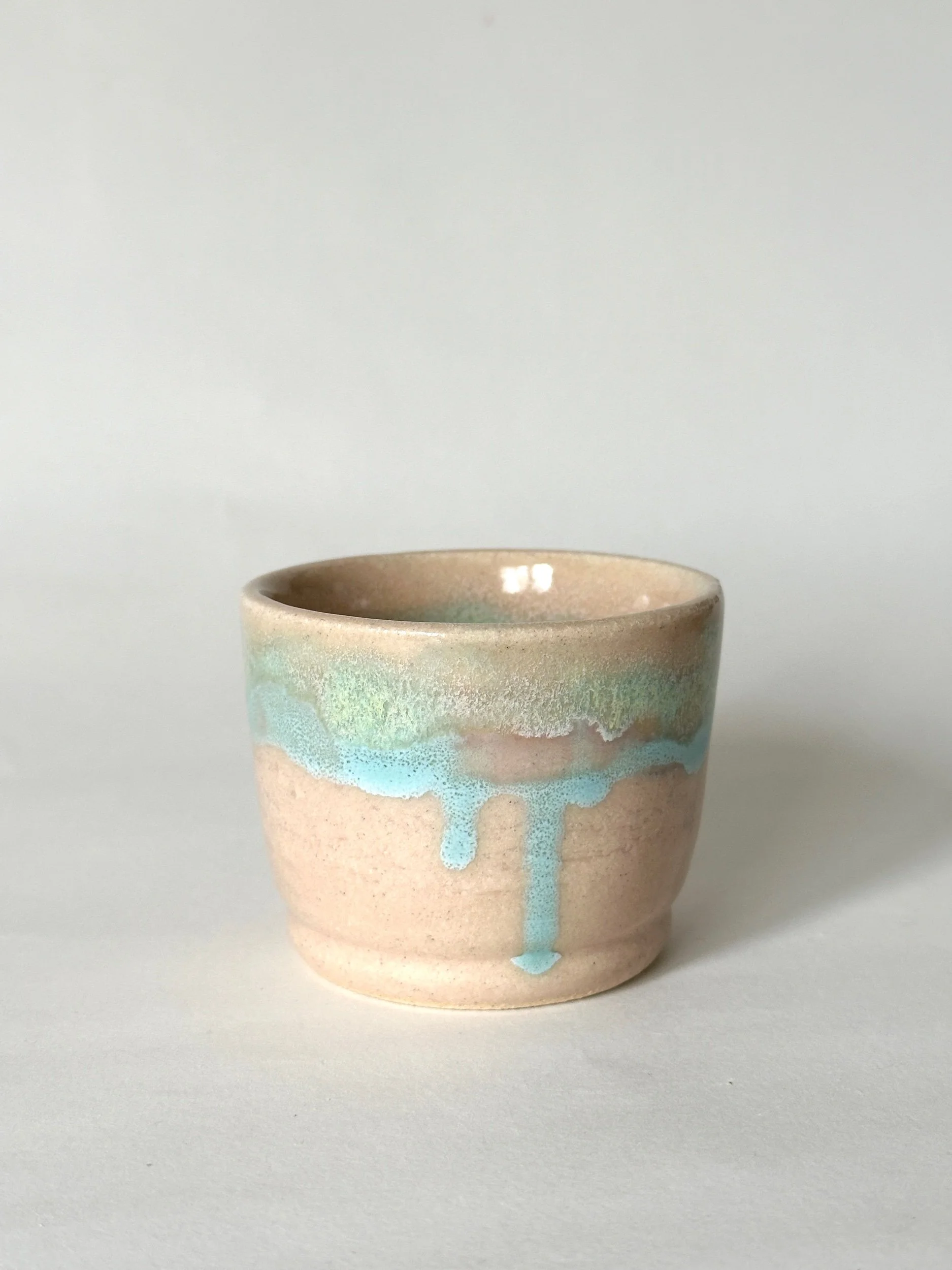 shop › drippy espresso cup Image 1 of 4 Image 2 of 4 Image 3 of 4 Image 4 of 4 drippy espresso cup £13.00 footed espresso cup, hand painted in a blush tone with drips of bright blue throughout W x 8cmH x 6cm Add To Cart Added! footed espresso cup, hand painted in a blush tone with drips of bright blue throughout W x 8cmH x 6cm